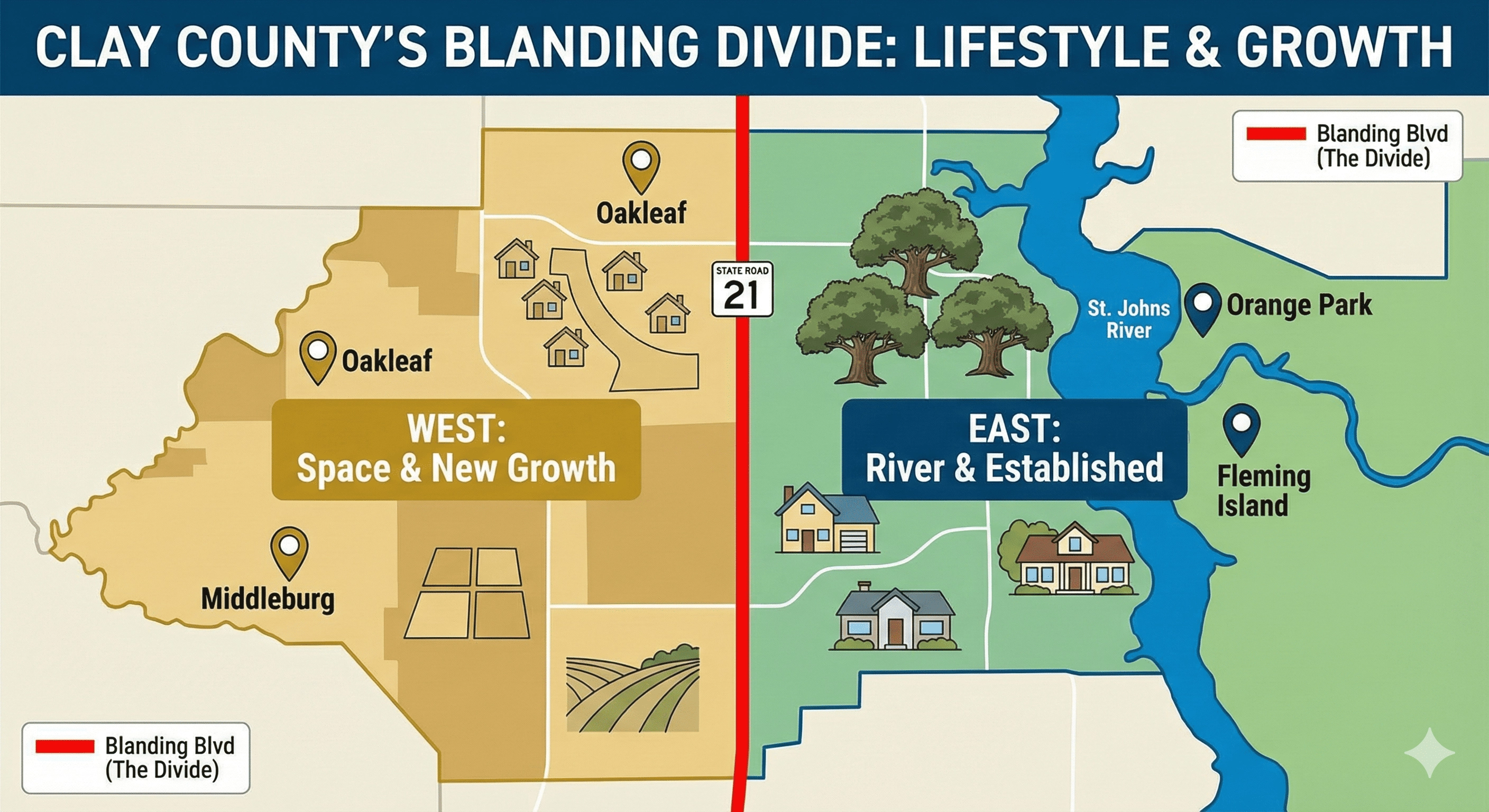 Blanding Boulevard isn’t just a road—it’s a lifestyle filter. Living east of it generally means shorter drives to Jacksonville and river access. Living west often means more space but more traffic friction during peak hours.