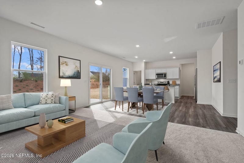 Listing details for 10034 Spotted Sea Dr, Jacksonville, FL 32219 : Welcome inside through the covered front porch, where a flex room offers the perfect space for an extra living area. From there, the home opens into the kitchen, dining area, and family room—ideal for everyday living and entertaining. The staircase is located just off the family room, while the mud room and powder bath sit near the kitchen. A walk-in pantry is positioned on the opposite side of the kitchen, and the patio is accessible from the dining area. Upstairs, the primary bedroom features a primary bath and a spacious walk-in closet. Three additional bedrooms share a full bath, with two of those bedrooms offering walk-in closets. The laundry room is conveniently located on the second floor for easy access.