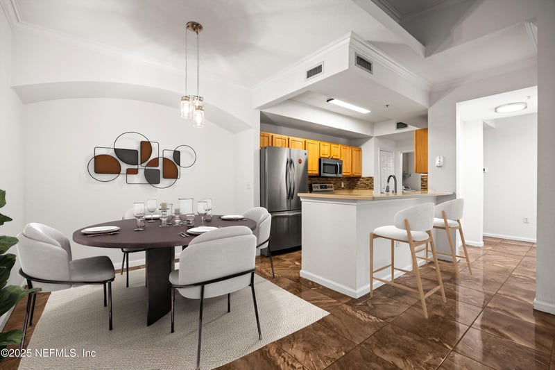 Listing details for 10075 Gate Pw #2505, Jacksonville, FL 32246 : Welcome to Mirabella, where comfort meets convenience in Jacksonville's esteemed condo community. This move-in-ready residence offers an open concept plan with three bedrooms, two bathrooms, and a private balcony. The well-equipped kitchen features maple cabinetry, stainless steel appliances, and solid surface countertops. The kitchen seamlessly connects to the dining room and a spacious family room, ideal for entertaining and relaxation. Sliding glass doors provide access to a private screened balcony for an intimate outdoor experience. The serene primary suite is strategically placed for added privacy and includes a walk-in closet, as well as an en-suite bathroom with dual vanities and a luxurious walk-in shower. Two additional bedrooms are equally inviting, offering ample space. Enhancements include modern paint, extended tile flooring throughout, and remodeled bathrooms. Water is included in the HOA fees. Situated just minutes from St. Johns Town Center, UNF, FSCJ, Mayo Clinic, downtown Jacksonville, and the beaches. Residents can enjoy resort-style amenities, including a swimming pool, clubhouse, and fitness center. Don't miss this exceptional opportunity to own a beautiful condo in one of Jacksonville's premier communities; schedule your showing today!