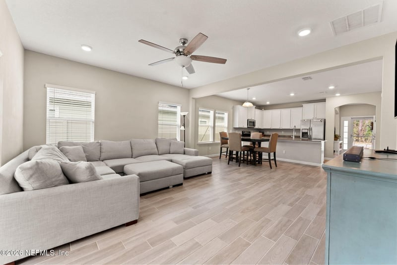 Listing details for 10106 Pavnes Creek Dr, Jacksonville, FL 32222 : This home features an assumable VA loan with an incredible 2.37% interest rate. Welcome to this beautifully maintained, move-in ready home in the desirable Longleaf community of Jacksonville! This light-filled, open-concept residence offers modern finishes and effortless flow. The spacious living area seamlessly connects to a well-appointed kitchen featuring white cabinetry, stainless steel appliances, a large center island, and ample counter space. Neutral tones and stylish flooring throughout create a warm, contemporary feel. The primary suite is thoughtfully separated from the additional bedrooms, providing added privacy and a peaceful retreat with generous space, plush carpeting, and a private ensuite bath. The secondary bedrooms are well-sized, and a dedicated office or flex room makes working from home a breeze.Enjoy exceptional privacy outdoors with no neighbors across the street to the right or behind... This home backs to protected common ground and preserve for serene, unobstructed views. It's the perfect setting for relaxing evenings or weekend gatherings. The paver driveway and charming curb appeal complete this inviting home. Conveniently located near shopping, dining, schools, and major roadways, this property offers comfort, style, and convenience all in one. Bonus: This home features an assumable VA loan with an incredible 2.37% interest rate a rare opportunity in today's market! Schedule your private showing today this one won't last!