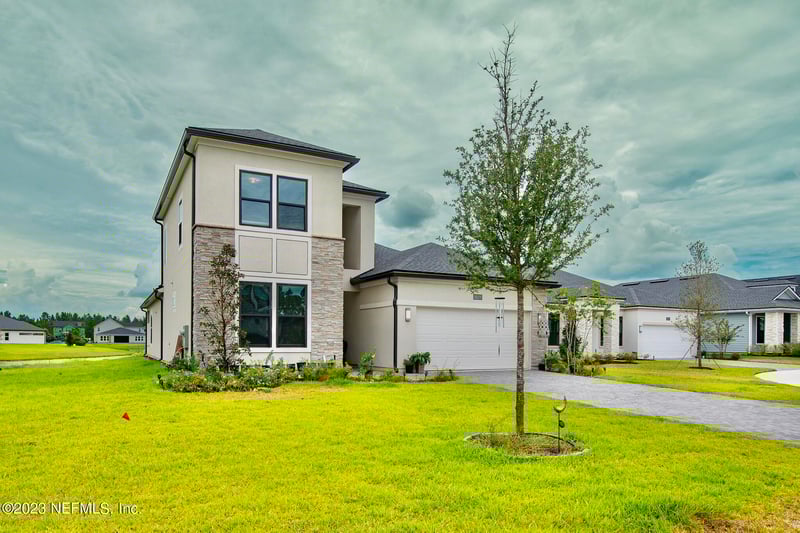 Listing details for 10173 Illumination Dr, Jacksonville, FL 32256 : Why wait to build when you can move right into this nearly new, impeccably designed home in a serene cul-de-sac setting? Gated community, nestled on a peaceful lakefront lot, this Toll Brothers gem offers the perfect balance of modern luxury and everyday comfort. Step inside to discover a bright and airy open floor plan where sleek light grey tile floors stretch across the main living spaces, creating a clean, contemporary vibe. Tall ceilings and seamless flow between living, dining, and kitchen areas make it ideal for both relaxing nights in and entertaining friends and family. Imagine waking up each morning to tranquil water view, sipping coffee in your stylish kitchen with over $30K in design center upgrades, and winding down in a space that truly feels like home. Whether you're hosting a dinner party, working from your quiet corner of the world, or enjoying peaceful evening walks around the neighborhood, this home fits your lifestyle—elevated, effortless, and ready for you.