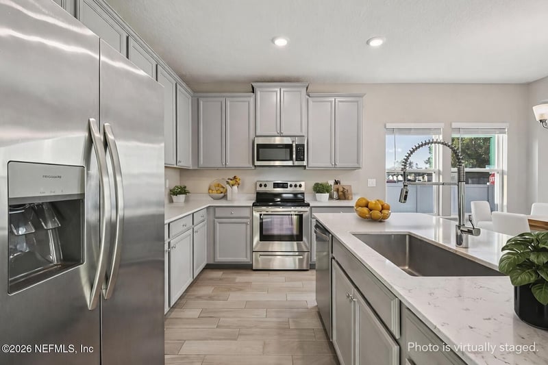 Listing details for 10206 Lebron Ct, Jacksonville, FL 32218 : Well-maintained home offering approximately 1,750 square feet with 3 spacious bedrooms, 2 full bathrooms, and an additional flex room ideal for a home office, playroom, or extra living space. The home is east-facing and described as Vastu compliant, a quality often associated with attracting positive energy, balance, and well-being for those who value this design. Built in 2021, this home feels modern, fresh, and truly move-in ready. Situated on a desirable corner lot, the fully fenced backyard provides privacy and plenty of space for outdoor entertaining, pets, gardening, or relaxing. Inside, you'll find a dedicated laundry room complete with washer, dryer, and utility sink. The owner's suite features a large walk-in closet, dual vanities, a soaking tub, and a walk-in shower. Notable upgrades include wood-look tile throughout the main living areas, neutral color palette, quartz countertops, stainless steel appliances, and a full-house water softener. Some photos are virtually staged.