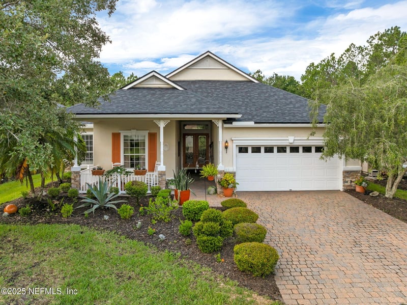 Listing details for 1025 Inverness Dr, St Augustine, FL 32092 : Located in the Cascades at World Golf Village, a premier 55+ gated community, this beautifully crafted home is set on approximately 30 feet of waterfront, overlooking a wide pond framed by protected preserve land, ensuring serene views and long-term privacy. A grand foyer with 12-foot ceilings and custom-cased doorways opens to light-filled living spaces with tile floors, tray ceilings, and expansive windows. The home offers three bedrooms, a dedicated office, a formal dining room with built-ins, and extensive trim throughout. The kitchen features double ovens, a custom pantry, and a breakfast nook with built-in seating. A standout extended covered lanai is ideal for entertaining and enjoying the tranquil setting. The owner's suite includes two walk-in closets and a distinctive dual-bath layout with two private toilets, dual vanities, a soaking tub, and a separate shower. Additional highlights include a laundry room with a sink and an EV-ready garage outlet. Cascades at World Golf Village provides security, comfort, convenience, and peace of mind by way of: 24/7 state-of-the-art virtual security system access and monitoring with fob entry into all facilities On-site landscaping services and irrigation maintenance Full-time Management Company services assisting with the day-to-day operations and on-site maintenance On-site Amenities Center Events Coordinator 5-member volunteer board of Directors (elections held annually) No CDD fees Our Amenities Center/Clubhouse is a 22,000 square foot facility that, once you enter the spacious lobby, includes the following: Grand ballroom with a performance stage Prep kitchen Billiards and darts room Poker room with flat screen TV Card and game rooms Library/Media room with flat screen TV Arts & Crafts room with two ceramic kilns Learning Center/Computer room Our Sports & Leisure Facilities are like no other adult, active community in St. Augustine. It includes: Heated indoor pool Outdoor pool & patio area with tables & chairs, chaise lounges, umbrellas, hot tub and covered party pavilion equipped with TV, grill, refrigerator, counter and storage spaces Enjoy over 4 miles of sidewalks for walking, jogging and/or biking as well as the beautiful path around Blue Heron pond Tennis courts (3 Har-Tru) * Pickleball courts (6) * Bocce courts (2) * Shuffleboard courts (2) * Croquet court (1) Putting green (1) * * Many of the courts have lighting, allowing for both day and evening use