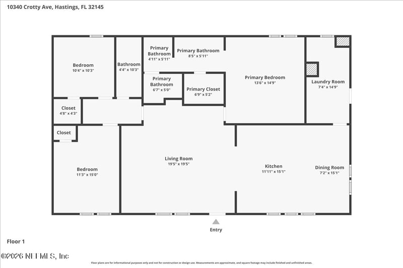 Listing details for 10340 Crotty Ave, Hastings, FL 32145 : ALMOST NEW and room to grow! Check out this well maintained home on OVER AN ACRE! Located on a paved road with an asphalt drive. Built in 2022 gives you piece of mind for years to come. Excellent layout with sizable rooms and LVP flooring throughout. Master bath has some extras! Soaking tub AND a separate walk in shower. Double sinks and walk in closet. Home boasts a large eat-in kitchen and large laundry room with additional storage. Land has been cleared and a 12x12 shed added for outdoor storage. Water softener and play equipment conveys! This is a blank canvas to make it your own!
