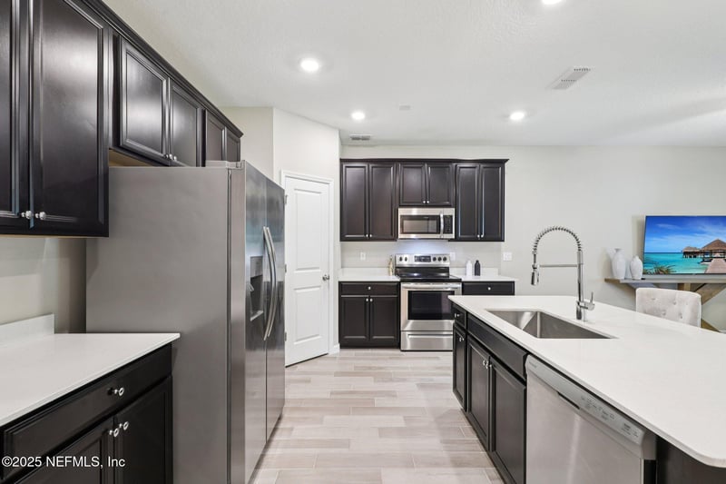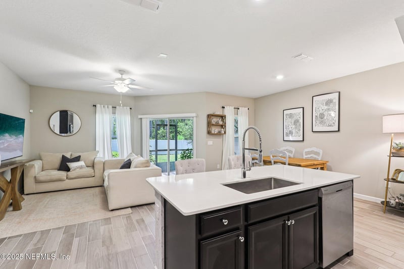 Listing details for 10360 Alder Creek Ln, Jacksonville, FL 32222 : This 2-bedroom, 2.5-bathroom townhome offers a smart layout with thoughtful details throughout. The open-concept floor plan features a well-appointed kitchen with a large island and breakfast bar, quartz countertops, stainless steel appliances, and a pantry for extra storage. The dining area flows into a spacious living room that opens to a screened lanai—complete with TV and cable hookups, making it the perfect space to unwind or entertain. A convenient half bath is located on the main floor, ideal for guests. Upstairs, the generously sized primary suite offers room for a sitting area, along with a walk-in closet and a private ensuite bathroom featuring a dual vanity and walk-in shower. The second bedroom also includes its own ensuite with a tub/shower combo and a walk-in closet, offering comfort and privacy. Additional highlights include smart home features, Ring security on all windows and doors, a 1-car garage, and a quiet cul-de-sac location. The community offers great amenities like a pool, fitness center, playground, and fishing pondwith exterior maintenance included in the association fee for low-maintenance living. Plus, you're conveniently located less than 7 miles from Costco, Starbucks, Walmart, and Sam's Club for everyday ease. Don't miss the opportunity to enjoy comfortable, connected living with room to relaxthis townhome is ready to welcome you home.