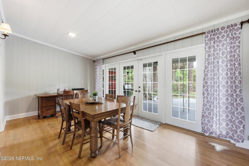 Listing details for 1049 Nightingale Rd, Jacksonville, FL 32216 : Built to last and full of charm, this solidly constructed home offers a warm and inviting feel from the moment you arrive. Inside you'll find beautiful hardwood floors run throughout, adding timeless character and durability. The layout features a separate living room and an oversized dining room that opens through French doors to a covered back patio, creating an easy flow for everyday living and entertaining. Step outside to enjoy a generously sized backyard that backs up to a peaceful wooded area, offering privacy and a natural backdrop. A firepit and playset complete the space, making it ready for fun! Enjoy the benefits of no HOA and no additional fees while still having a strong sense of community with neighborhood events and an active Facebook page. The local park is within walking distance, adding to the appeal of this inviting home. Professional and interior photos coming soon.