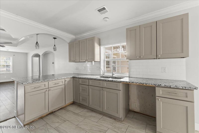 Listing details for 10565 Bessent Rd, Jacksonville, FL 32218 : Welcome to this beautiful single-story home, now offered by the owner after a complete renovation. This move-in-ready residence blends modern updates with comfortable living, featuring a bright open-concept layout filled with natural light. The updated kitchen showcases contemporary cabinetry, sleek countertops, and modern appliances, seamlessly flowing into spacious living and dining areas perfect for everyday living and entertaining. The home offers generously sized bedrooms and refreshed bathrooms with stylish finishes. Beautiful flooring runs throughout, complemented by updated fixtures that create a clean, modern feel. Large windows bring in abundant sunlight and provide peaceful views of the surrounding yard. Step outside to enjoy the expansive lot, and ample backyard space ideal for relaxing, gatherings, or future customization. A long driveway and additional storage shed add convenience and functionality.
