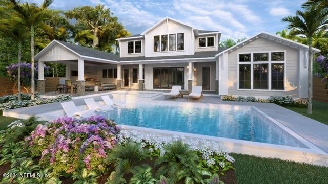 Listing details for 10566 Scott Mill Rd, Jacksonville, FL 32257 : To Be Constructed! Inspired by the Coastal Living style, this gorgeous custom-designed home offers 3,870 square feet of living space, plus an oversized 3-car garage and plenty of room outdoors. Soaring, two-story volume ceilings allow for enhanced natural lighting in the welcoming entryway as well as the living room and an open-concept floor plan creates a bright and breezy atmosphere throughout. Custom amenities can be found in abundance within the gourmet Kitchen, complete with luxury appliances, custom cabinetry and a large walk-in pantry. Also on the first floor is the Owners Suite, equipped with separate walk-in closets and a spa-style bathroom anchored by a large walk-in shower with multiple shower heads, a Guest Suite, and a Home Office with vaulted ceilings and more wonderful, natural light. The second floor offers two additional suited rooms, complete with two full bathrooms and walk-in closets. Convenient-conditioned storage can also be found at the top of the stairs, perfect for storing precious holiday decorations The home sets up beautifully for the Florida outdoor lifestyle, with a convenient transition from indoors to the backyard and a potential pool, outdoor Kitchen, and gathering areas. This beautiful custom house could be ready for you right away, or more personalized details could be added. The skilled Collins Builders team can accommodate any level of customization to meet your needs "Pricing assumes house and lot purchase only and does not include site-related preparation or other site-related installs"