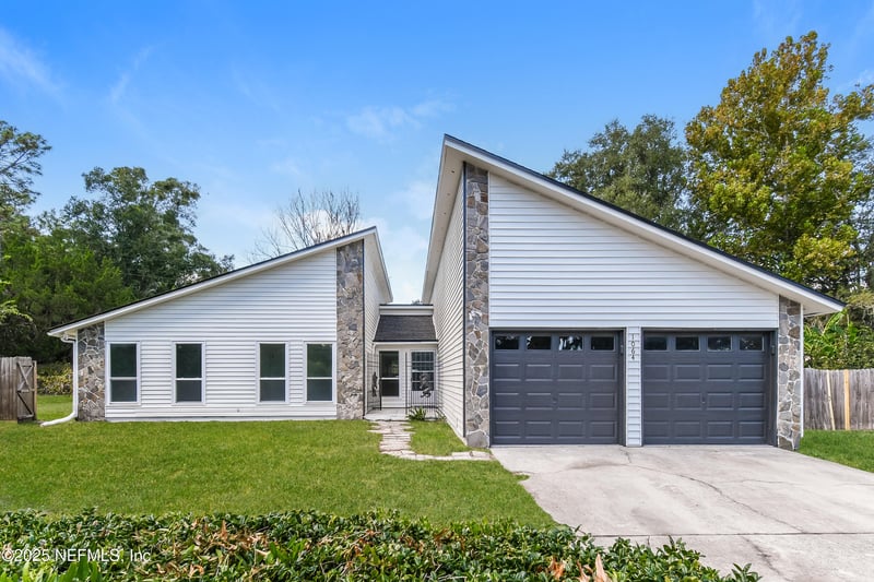 Listing details for 1064 Rene Ct, Orange Park, FL 32065 : Freshly updated 3BR/2BA home featuring a new roof, new water heater, exterior and interior paint, and refreshed bathrooms. Enjoy a mid-century modern exterior, vaulted ceilings, stylish painted cabinets with tile backsplash, all-tile flooring, and a spacious back patio for outdoor living.