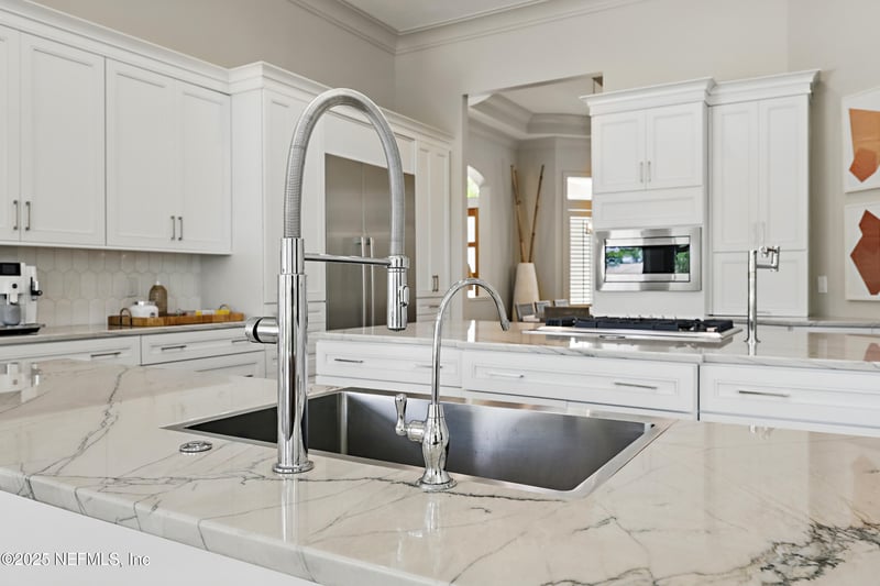 Listing details for 108 Settlers Row, Ponte Vedra Beach, FL 32082 : Tucked beneath a canopy of majestic oaks on a quiet double cul-de-sac street, this spectacular estate home is the very definition of sophisticated Florida living. Fully renovated with no expense spared, every corner of this 4-bedroom, 4-bath residence is a testament to thoughtful design, luxury craftsmanship, and timeless style. Step through the front door and be captivated by soaring ceilings, rich wood floors, and dramatic floor-to-ceiling windows that bathe the interiors in golden Florida sunlight while framing breathtaking golf course views. Architectural details abound, from elegant millwork to the carefully curated finishes that whisper of refined taste and modern comfort. A separate office with French doors offers a quiet, stylish workspace, while a versatile flex room off the primary suite provides endless possibilities — a second office, fitness studio, nursery, or private retreat tailored to your lifestyle. The heart of the home is the stunning gourmet kitchen  a true chef's delight with quartzite countertops, custom cabinetry, and top-tier appliances  perfect for entertaining in effortless style. The primary suite is a private sanctuary, offering expansive golf views, spa-like luxury, and custom-designed closets tailored for the most discerning homeowner. Each secondary bedroom offers its own beautifully appointed full bath, ensuring comfort and privacy for family and guests alike. Step outside onto the expansive outdoor patio  the ideal setting for al fresco dining, sunset cocktails, and simply enjoying the beauty of your surroundings. Whether hosting grand gatherings or savoring quiet mornings with coffee, the indoor and outdoor living spaces flow together seamlessly. A circular drive and an oversized side-entry three-car garage complete the property, combining functionality with elegant curb appeal. Located within the prestigious gates of The Plantation at Ponte Vedra Beach, residents enjoy unparalleled amenities, including private beach access, golf, tennis, pickleball, fitness center, and a vibrant social lifestyle.