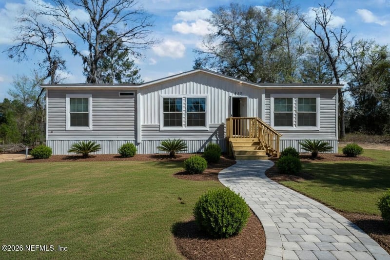Listing details for 112 Highland Dr, Hawthorne, FL 32640 : Welcome to The Woodland Retreat - A Brand New 2026 Manufactured Home. Discover the perfect blend of modern comfort and peaceful country living at 112 Highland Dr.. in Hawthorne, Florida. This contemporary 2026 manufactured home offers 3 bedrooms, 2 baths and 1,265 square feet of well-designed living space situated on a 0.23-acre lot. Step inside to find this bright, open-concept floor plan that effortlessly connects the living room, dining area, and kitchen, creating an inviting space ideal for both relaxing and entertaining. The interior showcases contemporary finishes, clean lines, and a neutral color palette, providing a fresh, modern aesthetic ready for your personal style. The kitchen is designed for both beauty and functionality, featuring ample cabinetry, generous counter space, and modern appliances, including a microwave and dishwasher. The split floor plan offers a primary suite with a spacious bedroom and a private bathroom. Two additional bedrooms offer versatility for gues a home office or flex space.This home is equipped with a state-of-the-art whole house water filtration system,providing everyday convenience and peace of mind.Adding more value to the property, the seller has already paid for and obtained a four-pointinspection, water test and engineering certificate. Therefore buyers can move forward withconfidence while avoiding having to pay for these inspections out of pocket.Outside, the 0.23-acre lot offers a manageable, low-maintenance setting with room toenjoy outdoor living, gardening or relaxing in a quiet country atmosphere.Ideally located, this property provides the serenity of rural living while remaining withineasy reach of key destinations:" Conveniently close to Gainesville" Approximately 30 minutes to Downtown Palatka" Just over an hour to the stunning St. Augustine beachesWhether you're searching for a primary residence, weekend escape or investmentopportunity, this move-in-ready brand-new home offers modern living in a peaceful NorthFlorida setting. Please note: Some images may be virtually staged to illustrate the home's potential layoutand design possibilities. Please reach out for copies of all inspections!