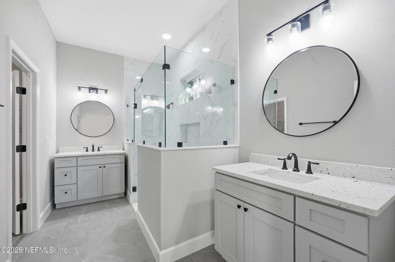 Listing details for 11296 Pine St, Jacksonville, FL 32258 : This newly built 4 bed/2 bath residence offers an exceptional opportunity for modern living, with every detail thoughtfully considered to provide a welcoming and functional environment. • An open floorplan: The heart of the home is a light-filled great room that flows effortlessly into the kitchen, creating an inviting space for gatherings. Enjoy preparing meals in a state-of-the-art kitchen featuring quartz countertops, stainless steel appliances, a large center island, and custom cabinetry. The spacious primary bedroom offers a walk-in closet and a luxurious en-suite bathroom with double vanities and a separate glass-enclosed shower. Multiple bedrooms provide flexibility for family, guests, or a home office, with modern bathrooms featuring high-end fixtures and finishes. All situated on a 1/2 acre lot with no HOA. You are free to build a workshop and park your boat or RV.