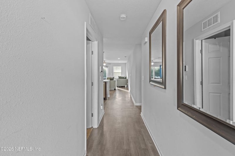 Listing details for 11338 Margarets Landing Pl, Jacksonville, FL 32218 : Built in 2020, this well-maintained 3-bedroom, 2-bath home offers 1,200 square feet of modern, efficient living in the desirable Margaret's Landing community. Conveniently located just 4 minutes from I-295 and approximately 11 minutes from River City Marketplace, this home provides easy access to shopping, dining, and major employment centers. The open living areas feature wood laminate flooring, complemented by dark wood cabinetry and upgraded stainless steel appliances in the kitchen. Margaret's Landing is a quiet, family-friendly neighborhood tucked off Dunn Avenue, consisting of only 60 homes on a single cul-de-sac, with scenic ponds running through the community. Close to schools, entertainment, and transportation arteries—this home offers comfort, convenience, and peace of mind in a newer construction setting.