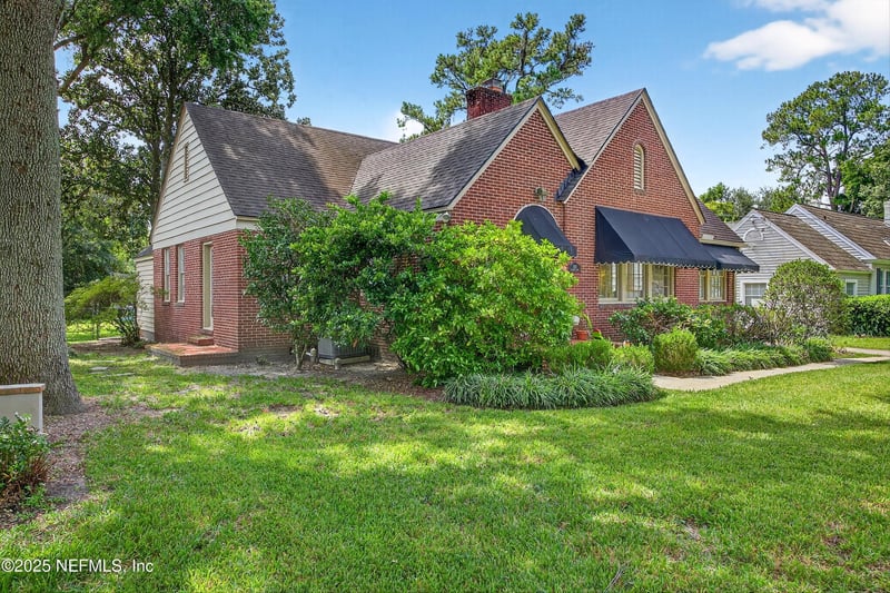 Listing details for 1152 Mapleton Rd, Jacksonville, FL 32207 : New roof installed 2nd week in Oct. Charming 1930's home close to the San Marco square, Granada Park & Hendricks Elementary. The curbside appeal of the beautiful brick w/the front facing awnings at the windows & door is pleasing to the eye. Many updates including renovated kitchen & baths. High ceilings & original hardwood floors throughout. Slate flooring in bathrooms & laundry room. Wood burning fireplace in living room adds a sense of warmth all year long. Arched openings brings a classic style to this home. Entire house is light & bright. Large, private backyard with screened patio. Additional 400 sqft in detached cottage which includes a living room, bedroom, and half bathroom with tile floors. This is perfect flex space for a number of uses including a guest suite, a home office, gaming room, man cave, or she space. Parking available behind the fence is available. The new screened patio to relax & enjoy. Front bedroom w/ attached wardrobe would make a great home office as well.