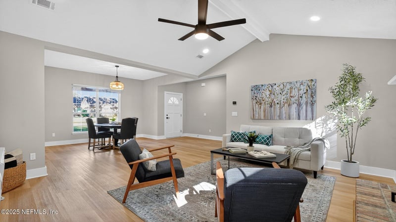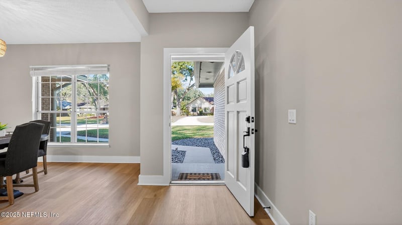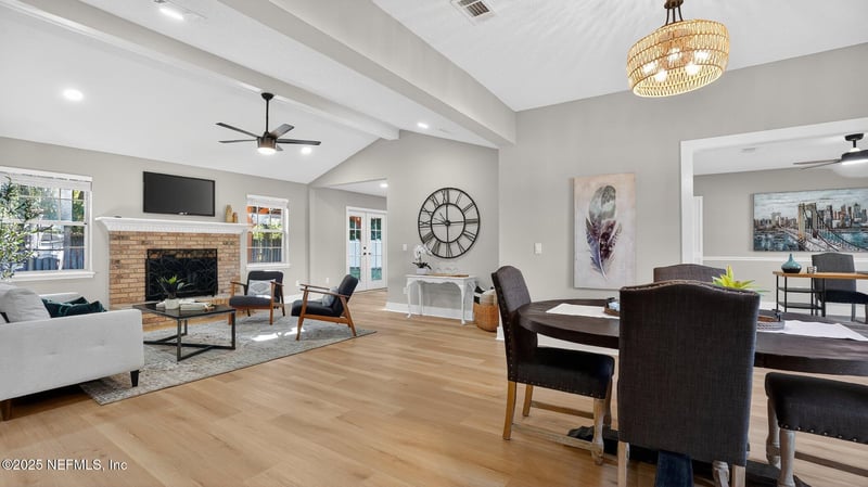 Listing details for 11538 Sedgemoore Dr, Jacksonville, FL 32223 : This turn key, move-in ready home features 4 bedrooms, 2 bathrooms, plus an additional flex room with a desirable split-bedroom floor plan. Enjoy a spacious family room with a wood-burning fireplace, an eat-in kitchen, a dedicated dining room, and an oversized primary suite. The fully updated kitchen boasts brand-new 42'' white shaker cabinets, quartz countertops, stainless steel appliances, and a large peninsula island perfect for hosting friends and family. Both bathrooms have been tastefully updated with modern finishes. French doors lead to a private, fully fenced backyard featuring a paver patio, firepit, and a pergola already wired for electrical—ideal for outdoor entertaining. Major upgrades include a Brand New Roof, Water Heater & Electric Panel. 2023 HVAC, New Flooring, New Doors, New Paint Inside and Out, Updated Bathrooms, Kitchen, Appliances, Lighting, Plumbing and Garage Epoxy Flooring. Schedule your showing today and see why this home stands out from the rest.