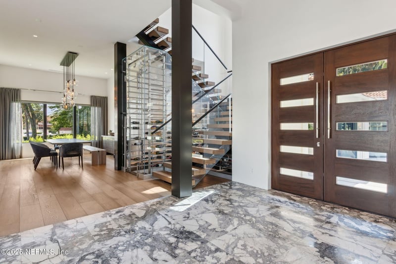 Listing details for 116 Annapolis Ln, Ponte Vedra Beach, FL 32082 : OneSixteen embodies the details of the finest finishes offering exceptional indoor/outdoor living and entertaining, plus much more. This state-of-the-art modern home located behind double security gates and further protected by impenetrable glass entry around the entire home. It is most likely what you don't see that provides the necessary comforts you should mandate in your next home. Off-grid uninterrupted living is the new platinum standard with quadruple power redundancy paths that ensure your standard of living remains consistent no matter what mother nature throws your way. Innovation is abundant in the compete home automation of almost every function using the integrated glass keypads or your phone app. The epicenter of sports and entertainment, the ESPN Room displays a 97'' and two 77'' TVs, theater style seating, acoustical ceiling & impressive sound. Fitness made easy in the tailored open-air gym, complete with custom ballet bar and mirrored wall to keep perfect form. Architecturally nestled under the floating staircase is your Glass Wine Cellar featuring a panoramic, yet prominently lighted display of 306 temperature-controlled reds, whites and bubbles. The "On trend" kitchen is truly a work of art with Wolf and Subzero appliances embedded into a custom designed cabinet system that is state of the art, plus natural stone from Italy enhances the fine finishes of the island, perimeter and back splash. Not to be missed are the Floating Wooden Tread Lighted Staircase with Glass Handrail, a private and ever so quiet Elevator, and Canadian engineered and flush mount solid core doors with German engineered invisible hinges. The porcelain driveway offers a seamless transition to the garage finished floor. This Trophy Garage awaits your collectibles with room for 3 on the floor while an extended car lift offers storage for a 4th vehicle. Designed with a superb sound system, a large screen TV, super comfortable chairs on an inlayed wood floor system for hanging with friends & enjoy that special pour from the bourbon bar. Outdoor features include a stunning, modern architectural water wall feature rising out of a tropical planter, summer kitchen, outdoor dining & Ping Pong Table, firepit with 4 chairs in the round, pool with sun shelf, outdoor speakers & artificial turf for easy entertaining. Anchor your Yacht in your back yard in the 60' slip which is just steps away. Access to the intracoastal is literally minutes away for year-round sun and fun. This is the perfect home to entertain the friends in the bourbon room, hold that special fund raiser for 200 plus guests, or step out your back gate and onto your yacht or make special memories during intimate family events, and most importantly to live life every day in a well-built, safe and secure home.
