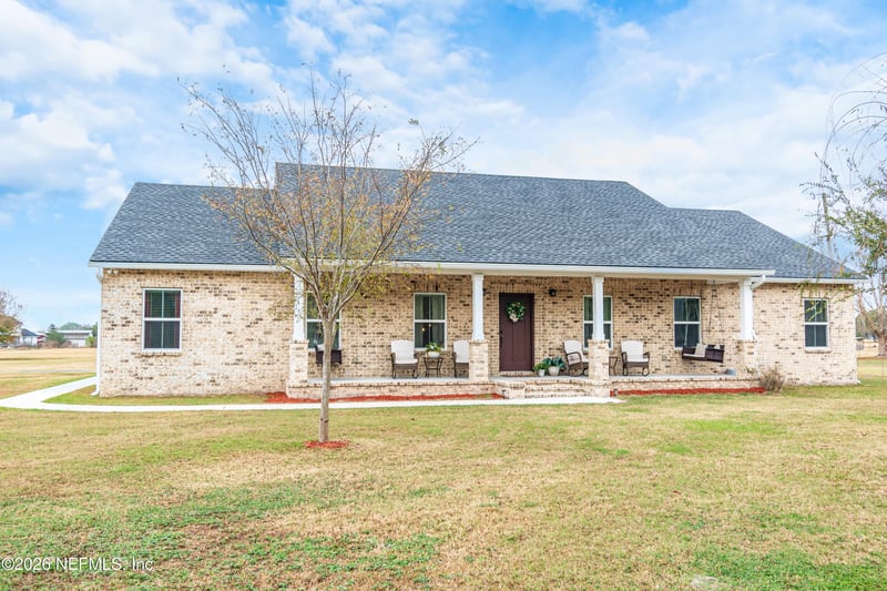 Listing details for 11630 Silver Meadow Dr, Glen St Mary, FL 32040 : Welcome to this stunning custom built brick home offering the perfect blend of comfort, space, and country living on 9.89 acres. This home features an open floor plan with a welcoming front porch and a chef's dream kitchen complete with custom cabinetry,a breakfast bar, and seamless flow into the spacious living room and dining area perfect for everyday living and entertaining.The huge master suite is a true retreat, with a luxurious master bath, double vanities, a walk-in tiled shower, and large closet. The split guest bedroom layout provides privacy, featuring one guest bedroom with a private bath and two additional bedrooms connected by a Jack & Jill bathroom. Step out back to a covered porch overlooking the swimming pool, plus a large patio ideal for parking or entertaining.The land includes a barn for farm equipment, a storage shed with power & AC,and a fenced pasture for horses or livestock and room for a garden.Experience the best of country living. This home truly has it all.
