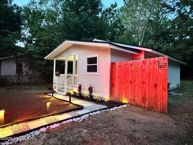 Listing details for 1165 Orton St, Jacksonville, FL 32205 : charming 3 bedroom, 1 bath home offering comfort and functionality throughout. A welcoming front porch invites you inside, where luxury vinyl plank flooring spans the main living areas, while soft carpet adds warmth to the hallway and bedrooms. The kitchen provides ample space with white shaker cabinetry and additional open shelving that beautifully complements the butcher block countertops. Stainless steel appliances, including an over-the-range microwave, complete the space with a modern touch. Step outside to enjoy the expansive backyard, perfect for relaxing or entertaining. Washer and dryer hookups are provided for added convenience. Great for an owner occupant and for the curious investor it was previously rented for $1450 per month.
