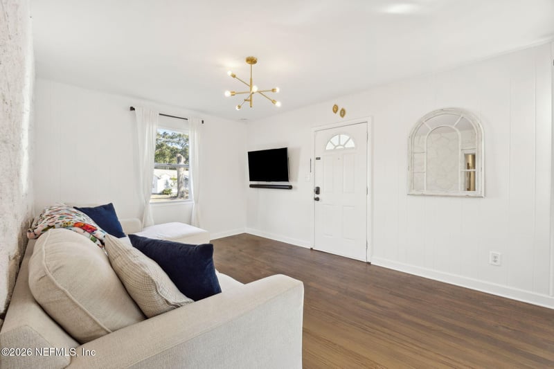 Listing details for 1171 Scotten Rd, Jacksonville, FL 32205 : Welcome Home! As you approach, you're greeted by a charming covered front porch-ideal for greeting neighbors or enjoying a peaceful moment. The heart of the home features a bright open-concept layout filled with natural light and inviting warmth. The living space offers beautiful floors, modern lighting and thoughtful design details. The updated kitchen showcases natural butcher block countertops, stainless steel appliances, open shelving, and a spacious breakfast bar that flows seamlessly into the dining and living areas-perfect for everyday living and entertaining. Just beyond the kitchen, a convenient pantry and laundry room with abundant storage space. The home continues to impress with an oversized primary bedroom that provides a peaceful retreat with ample space and updated bathroom. Secondary bedrooms are equally charming and versatile. The guest bathroom also highlights updated finishes and modern fixtures. This home offers a spacious backyard, ideal for relaxing or entertaining, along with a detached garage and fully fenced yard. Major system updates include a new roof, HVAC system, and tankless water heater, all replaced in 2022-offering peace of mind for years to come. Don't miss this sweet Murry Hill gem-schedule your showing today!