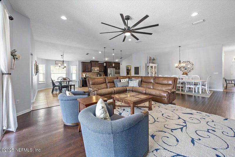 Listing details for 11736 Paddock Gates Dr, Jacksonville, FL 32223 : Discover this stunning 6-bedroom, 4-bathroom POOL home in a gated Mandarin community, offering over 2,900 sq. ft. of beautifully designed living space and a first floor master suite. The open floor plan features wood floors, a chef's kitchen with granite countertops, a double oven, a walk-in pantry, and a breakfast nook. The spacious master suite boasts LVP flooring, a tray ceiling, a bay window, walk-in closets, a double sink vanity, a garden tub, and a walk-in shower. Upstairs, you'll find two additional bedrooms and a full bath with a double sink vanity and walk-in shower. Step outside to a covered back porch, paver pool patio, and heated pool with a dedicated pool bath, all overlooking a serene pond view. A paver driveway leads to the three-car garage, completing this exceptional home.