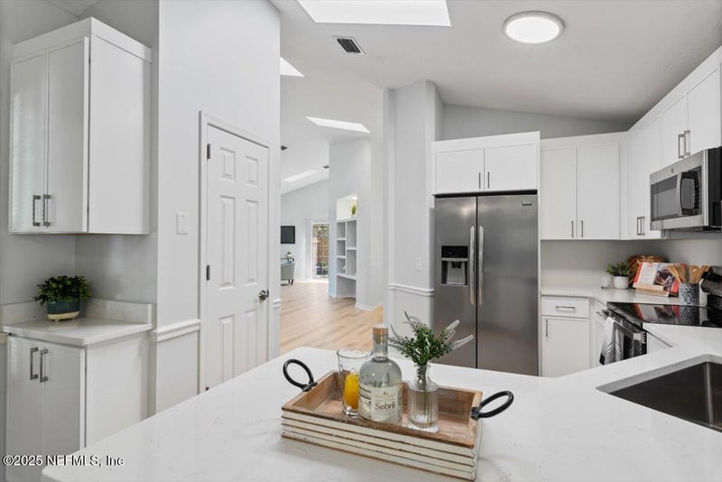 Listing details for 1193 Linkside Ct, Atlantic Beach, FL 32233 : New roof is completed! With a 30 year manufacturer warranty and 15 year craftsmanship warranty that will be transferred to the new owner. Right around the corner from the Atlantic Beach Country Club - without the club dues. This beautifully renovated, turn-key home delivers style, comfort, and location in one bright, coastal package. Reimagined by local favorite Bluewave Builders, this 1875sf single-family home has been thoughtfully updated throughout. Be the FIRST to live in these stunning upgrades, including fresh interior paint, brand-new luxury vinyl plank flooring, a fully renovated kitchen with sleek Carrara Arabescato quartz countertops, and a completely reimagined primary bath. The home also features a new garage door, fresh exterior fencing for privacy and pets and an upgraded paver patio outdoor living area. Sitting on a spacious corner lot with lush, mature landscaping, this home offers peaceful seclusion with unbeatable convenience. Cruise by bike or golf cart to nearby shops, parks, and restaurants, take a shaded stroll under the oaks, or spend your afternoons by the ocean - just minutes away. Whether you're relocating, downsizing, or simply chasing the Atlantic Beach lifestyle this hidden gem checks every box. Your beachside escape starts here.