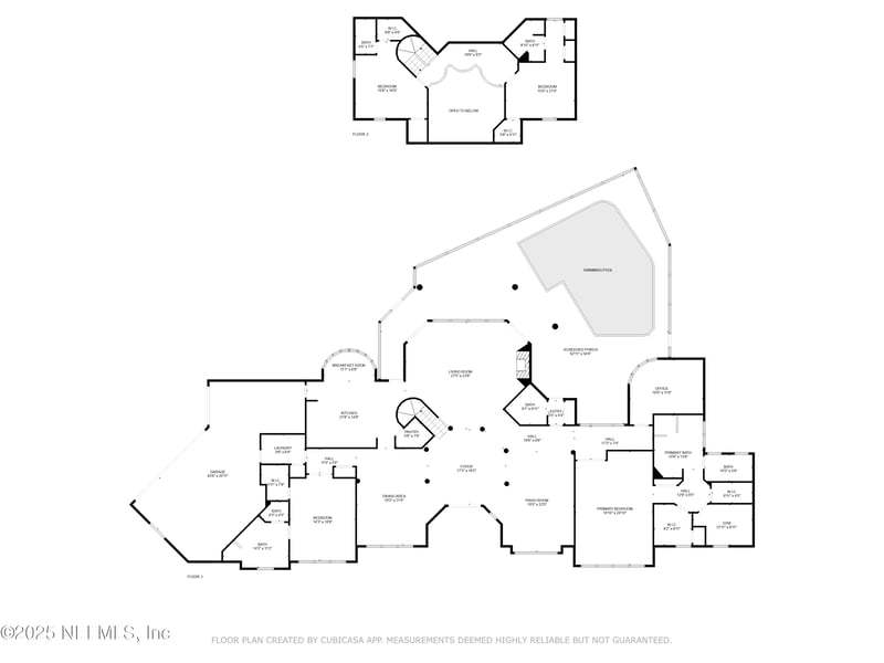 The primary suite is truly a retreat, occupying its own wing with an oversized bedroom, luxurious en-suite bath, dual walk-in closets, a sitting room, and a versatile flex room perfect for a gym, nursery, or studio. A private office with built-ins overlooks the pool for serene productivity.