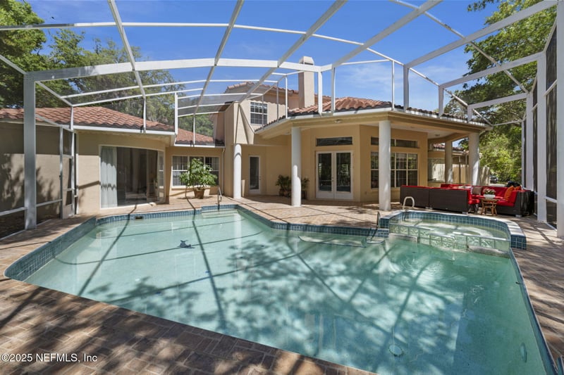 Step outside to your private sanctuary: a screened-in lanai with a sparkling pool, spa, and a lush preserve backdrop. Piped and ready for a summer kitchen, this expansive outdoor space is perfect for everything from quiet mornings to lively gatherings.