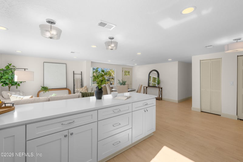 Listing details for 12035 Goldenrod Cir, Jacksonville, FL 32246 : Imagine yourself in a masterfully reimagined, new home in the heart of Southridge. This architecturally planned 1444 square foot, 4-bedroom, 3-bathroom transformation features professional interior design and a seamless new addition. The open concept layout allows for natural light and a warm inviting space to gather. Aside from the beautiful finishes, the new home was done with full electrical re-wire, new HVAC, new roof, energy-efficient windows, and all-new plumbing! The lot is 151 feet deep, offering an open canvas to plant a garden, a pool or for a simple enjoyment of nature. The location is sought after for its quick access to the beach, St John's Town Center and Jacksonville's top rated public and private schools.