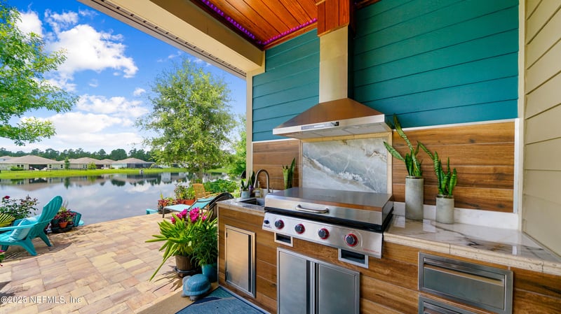 Listing details for 122 Brybar Dr, St Augustine, FL 32095 : Welcome to Creekside at Twin Creeks, Where Comfort Meets Lifestyle! Situated in the heart of St. Johns County, this beautifully maintained 3-bedroom, 2-bathroom home blends modern upgrades with the charm of Florida outdoor living. Step into your backyard oasis, featuring serene pond views and an expansive paver patio designed for both relaxation and entertainment. Complete with a jacuzzi, built-in flat top grill, and a privacy wall. The covered grilling area is built to impress with durable metal framing, tile finishes, a marble countertop, stylish backsplash, and a premium flat top grill. Stainless steel cabinet features include a vented hood, storage drawers, and under-counter storage with a modern outdoor sink. Relax with accent lighting LED lanai lights, solar lighting, Govee smart lights, and Bluetooth speakers, perfect for evening hangouts, cookouts, and gardening alike. Inside, enjoy a thoughtfully upgraded kitchen with a custom island, elegant backsplash, under-cabinet lighting, and a brand-new 2024 refrigerator. The home also includes a Ring doorbell security system and built-in cabinetry for added storage and convenience. The property includes gutters around the entire home and a widened paver driveway for added curb appeal and convenience. As a resident of Creekside at Twin Creeks, you'll enjoy access to resort-style amenities including a community pool, fitness center, clubhouse, tennis courts, playgrounds, and walking trails, all just minutes from St. Augustine, Nocatee, and Jacksonville, and within a top-rated school district. Whether you're looking to raise a family, entertain guests, or simply enjoy the Florida lifestyle, this home truly delivers it all. All information pertaining to ;the property is deemed reliable, but not guaranteed. Information to be verified by the Buyer. Be advised that cameras may exist recording audio and video inside/outside the property, such as ring doorbells. Photos are digitally enhanced and could be altered, please verify.