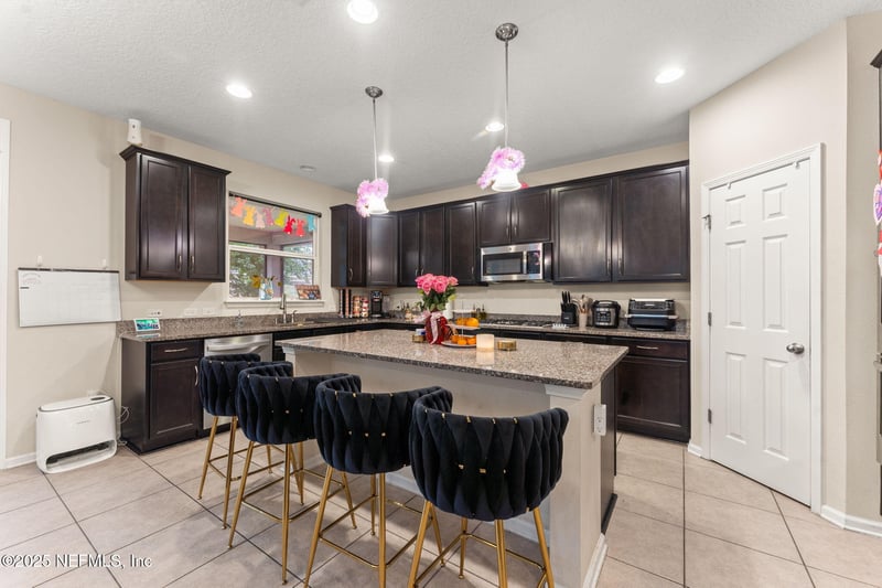 Listing details for 12262 Silverthorn Ct, Jacksonville, FL 32258 : Welcome to Silverthorn - a sought-after community in the heart of Mandarin, just off Old St. Augustine Rd! This beautifully maintained 5-bedroom, 3-bathroom home offers over 2,900 square feet of spacious, versatile living with an ideal location on the cul-de-sac. Step into a chef's kitchen featuring rich 42'' maple cabinetry, granite countertops, gas cooktop, stainless steel double ovens, side-by-side refrigerator, built-in microwave, and dishwasher. The large food prep island, highlighted by elegant pendant lighting, opens to a tiled dining nook and expansive great room—perfect for entertaining or everyday living. A convenient first-floor bedroom and full bath make a great guest suite or private office. Upstairs, you'll find four additional bedrooms including a generous primary suite, along with a spacious loft area featuring luxury vinyl plank flooring—ideal for a second living space, playroom, or media room. Don't miss this opportunity to own a thoughtfully designed home in one of Mandarin's most desirable neighborhoods with convenient access to I-295, downtown Jacksonville, NAS Jacksonville and the Beaches.