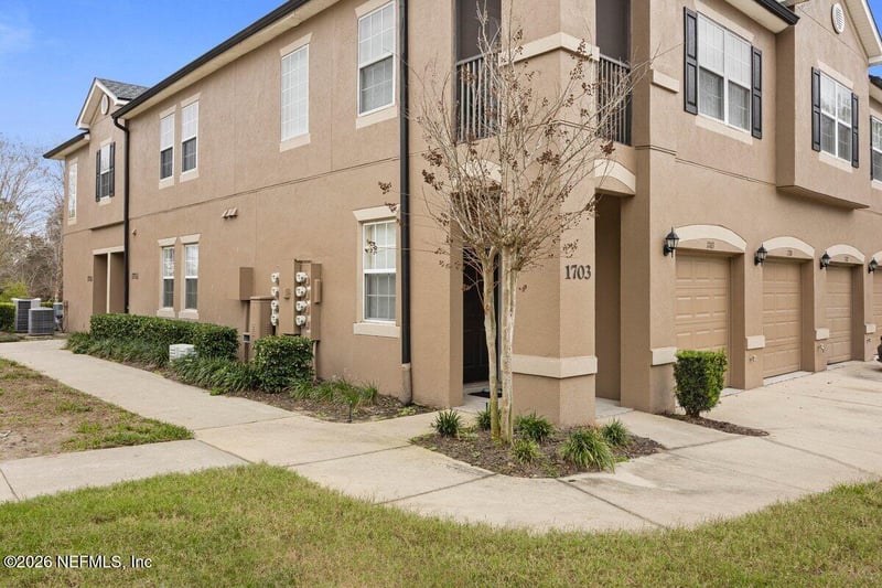 Listing details for 12301 Kernan Forest Blvd #1701, Jacksonville, FL 32225 : Location! Location! Location! Welcome home to this rare - first floor, end unit with a beautiful pond view and a single-car garage located within a gated community. This is the perfect location with only a short drive to the beach, Mayport, access to I-295, shopping, restaurants, St. Johns Town Center and other major areas. New updates include fresh paint and new carpet. This split-floor plan offers 3 bedrooms and 2 full baths. The spacious primary suite has a view of the pond, walk-in shower, and large walk-in closet. The kitchen has nice wood cabinets and black appliances. Enjoy relaxing on the screened-in porch with a beautiful view of not only one but two ponds. Amenities include pool, clubhouse, playground, and ___. Don't miss out on the opportunity to own this first floor, end unit with a beautiful view and one of the most sought-after locations in Jacksonville!
