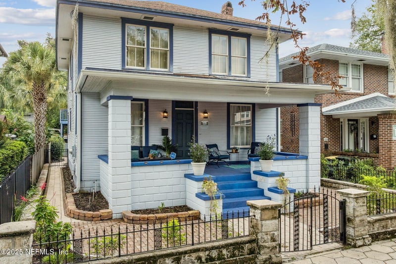 Listing details for 1235 Laura St, Jacksonville, FL 32206 : Beautifully restored Historic Springfield property offering a total of 2,884 SF: a 2,234 SF main home plus a 650 SF carriage house and a spacious two-car garage. A rarity in Springfield! Just a block from Klutho Park and minutes to Downtown, TIAA Bank Field, hospitals, San Marco, and Riverside. The main house showcases high-end trim, beadboard and coffered ceilings, hardwood floors, and an open floorplan with living, dining, breakfast nook, and sunroom leading to the back deck and gardens. The spacious owner's suite features dual walk-in closets and a spa-style bath with double shower and dual vanities. Outside, enjoy the furnished porch, backyard deck, and lush gardens. The carriage house over the garage offers ideal space for rental income, Airbnb, guests, or a private office. A perfect blend of history, flexibility, and income potential in one of Jacksonville's most vibrant neighborhoods. Fenced courtyard for privacy