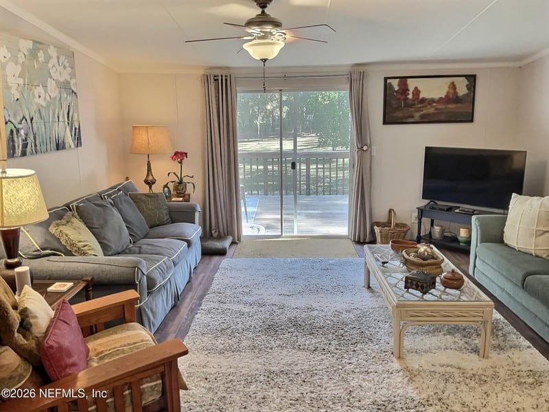 Listing details for 124 Idlewood Acres Rd, Pomona Park, FL 32181 : This lovingly maintained three-bedroom, two-bathroom home is situated on a spacious lot on a dead end road. The open floor plan features a dining area and a comfy living room with sliding glass doors leading to the back deck, which offers a breathtaking view of the wooded backyard. The primary bedroom boasts two closets, including a walk-in closet. The primary bathroom has two sinks and is conveniently accessible from the laundry room. Additionally, the home includes a two-car carport, a detached shed, and a fenced backyard. The metal roof, heat pump, and flooring were installed within the past five years. This home is ideal for individuals who enjoy country living, particularly those who have farm animals or engage in gardening.