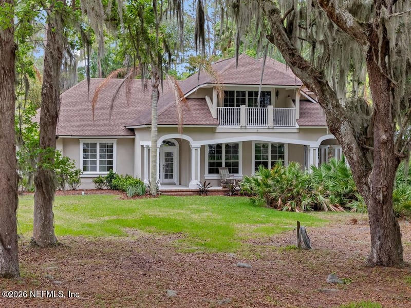 Listing details for 124 River Plantation Rd, St Augustine, FL 32092 : A 3.74 Acre Estate is now available On the St Johns River where the ''Bartram Scenic Trail ''winds through a shaded canopy of old oaks near a historic River Crossing at Picolata. ''Rivers Edge Plantation'' is a thoughtfully developed community providing spacious homesites, riverfront docks, and access to 120 acres of green conservation with groomed trails for horses and humans. A custom designed home, built by the original owners features an open floor plan and defined areas for kitchen, breakfast, dining and family gatherings that enjoy a fireplace and a soaring 19' ceiling. A well appointed primary suite includes sitting area with awesome river views, double closets, vanities, a soaking tub and walk-in shower. The second floor is comprised of 2 bedrooms, a loft with wetbar, and an office with panoramic views of the river that easily converts back to a 4th bedroom. A back stair leads to an unfinished bonus room, currently great storage that could provide additional living space... Take a stroll to your boat at the end of a 300' dock with 30' slip and 10,000 lift, a separate 1,500 lb jet-ski lift , and a 200 sq ft platform for entertaining or fishing for a variety of native fish, Blue crabs, and seasonal shrimp. Manatees are constant visitors in the summer. The "back" lot across the street to the east provides space for your RV, trailers, or the construction of an additional garage or barn. This parcel connects to the 120 acre preserve which provides 4 miles of riding trails for the Equestrian... go to the "Documents" for the Full Experience from the owner.