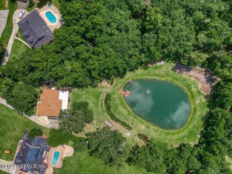 Listing details for 1242 King James Pl, Jacksonville, FL 32218 : Welcome to your picturesque retreat nestled at the end of a peaceful cul de sac, boasting 2.3 acres of meticulously landscaped grounds and a wealth of outdoor amenities. A serene man-made pond with a charming fishing dock sets the scene for tranquil afternoons. An established garden and shaded picnic area offer perfect spots for relaxation and gatherings. Three spacious outdoor sheds provide ample storage for all your outdoor equipment and toys. The expansive Florida room, screened lanai, and covered deck extend your living space outdoors, ideal for hosting gatherings or simply soaking in the peaceful surroundings. Grab your paddle boat and explore the pond--it's your invitation to unwind and stay a while. Surrounded by lush trees and wooded areas, this property ensures privacy and serenity. NO HOA! Inside, the home offers a perfect blend of comfort and functionality. Four bedrooms, including a secluded master suite, provide ample space for relaxation and privacy. The master bedroom features a large ensuite bathroom and a walk-in closet, offering convenience and luxury. A well-appointed office off the back of the home provides a peaceful workspace or hobby area. The open concept design seamlessly connects the kitchen, which overlooks the spacious family room, creating a warm and inviting atmosphere for gatherings and everyday living. Whether you're seeking a serene retreat or a place to entertain and create memories, this rare beauty offers it all.