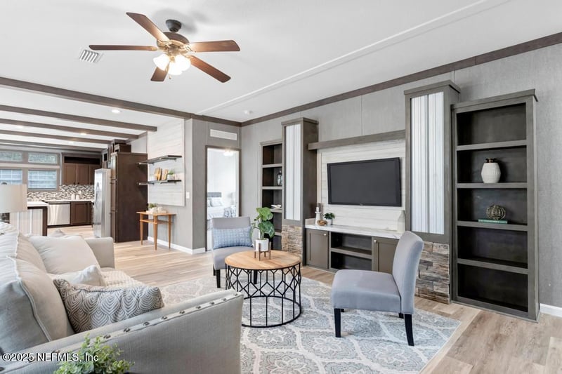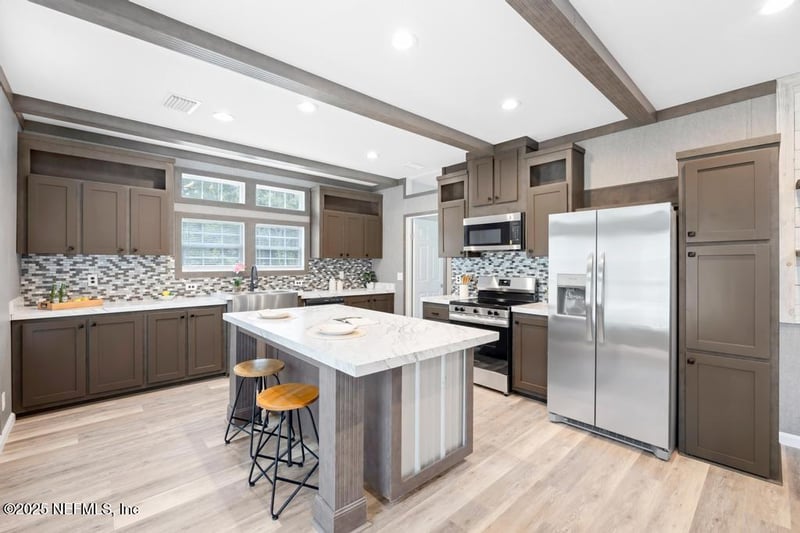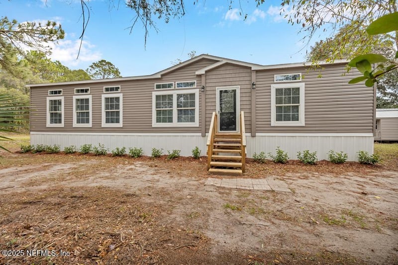 Listing details for 12613 Sapp Rd, Jacksonville, FL 32226 : Beautiful 3/2 upgraded manufactured home built in 2021, featuring 10-foot ceilings and a like-new feel throughout. Situated on a spacious 0.37-acre lot, this home offers stainless steel appliances and modern finishes. Conveniently located just minutes from River City Marketplace, it's one of the most affordable newer homes in the area.
