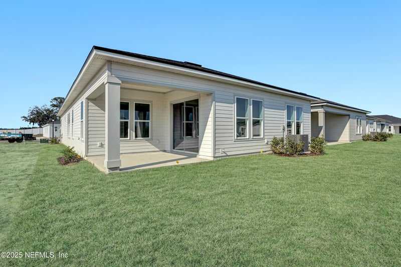 Listing details for 127 Shy Spruce Cir, St Augustine, FL 32092 : Welcome to the distinguished Clark residence in The Meadows Collection at Reverie at Silverleaf - where refined living meets thoughtful design in an elegant 2022 square foot home. This exquisite floor plan showcases a harmonious blend of sophistication and functionality, beginning with an impressive three-car tandem garage that provides abundant space for vehicles and storage. The welcoming foyer leads to a meticulously crafted great room that serves as the home's central gathering space, perfectly complemented by an adjoining café area ideal for morning coffee or casual dining. The gourmet kitchen features premium finishes and a practical layout, including a walk-in pantry and ample counter space for culinary pursuits. The owner's suite presents a private retreat with a spa-inspired bathroom featuring dual vanities and a generous walk-in closet with custom storage solutions.