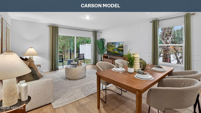 Listing details for 12751 Geronimo Pl, Jacksonville, FL 32218 : This beautifully designed new construction villa called the Carson by D.R. Horton offering 1,492 square feet of low-maintenance living. This 3 bedroom, 2.5 bath home with a 1 car garage delivers modern style, smart functionality, and comfortable two-story living. The open-concept main floor is perfect for everyday life and entertaining. A spacious kitchen anchors the home, featuring ample cabinetry and counter space, and flows seamlessly into the gathering room to create a bright, connected living area. A convenient half bath downstairs adds extra functionality for guests. Upstairs, all three bedrooms are thoughtfully positioned for privacy. The owner's suite includes a private en-suite bath and generous closet space. Two additional bedrooms share a full bath, making this layout ideal for families, guests, or a home office. With its efficient floor plan, modern finishes, and attached 1 car garage, this D.R. Horton villa offers the perfect blend of comfort and convenience.