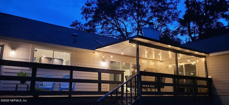 Listing details for 12787 Julington Rd, Jacksonville, FL 32258 : This stunning 3 Bed/ 2 Bath home sits on over a quarter-acre of land, offering natural serenity. Gorgeous travertine & dark wood laminate flooring & spacious rooms filled with natural light. Chef's Dream Kitchen: Huge Kitchen with premium granite counter tops & custom cabinetry. Stainless steel appliances, a prep island, & a built-in wine rack. Stylish tile backsplash & a breakfast bar for easy mornings. Indoor-Outdoor Living: The open floor plan features a cozy wood-burning fireplace, a formal dining room, and an expansive family room. Retreat to your spacious primary suite with a renovated bath. Step through any of the three sliding glass doors onto an elevated deck to take in breathtaking treed views, or unwind by the backyard fire pit under the stars. Private corner lot. More Extras You'll Love: Over-sized two-car garage, & large paver driveway. Prime Location: Minutes from I-95, Bartram Park shopping, & Baptist South Hospital, yet tucked away in a quiet, nature-filled setting.
