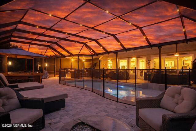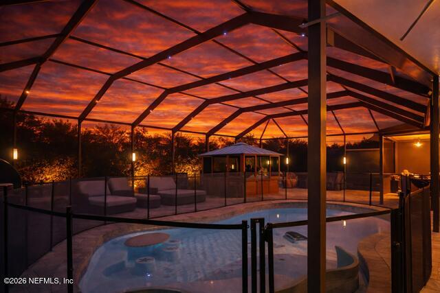 Listing details for 12884 Meaghan Ct, Jacksonville, FL 32225 : Don't miss this stylish and spacious 5/3.5 heated pool home with jacuzzi tub and steam room that has been completely upgraded from top to bottom. Roof was replaced in 2016. • Jacuzzi * Sauna * G-man mosquito system for outdoors * Outdoor shower * Fenced Dog run area with artificial grass * Fenced yard * Well for irrigation * LED Pool enclosure lighting top and side * Baby gate around pool * Water softener * Shark garage flooring * Extended the paved screened patio 10 feet * Outdoor kitchen including beer taps for kegs * Added extended cook island with sink * New kitchen with custom cabinets, upgraded appliances, and quartz countertops * Two Gas inground fire pits on patio * Landscape lights..