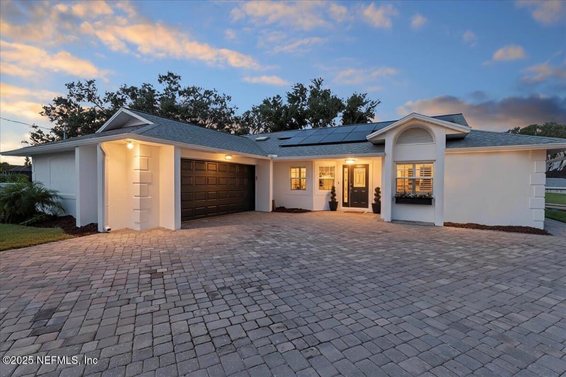 Listing details for 13 Chadwick Ct, Palm Coast, FL 32137 : Welcome to true waterfront living in Palm Coast, positioned on a rare 198-foot canal tip lot with sweeping water views, private boat dock, boat lift and direct Intracoastal access. This beautifully designed 3-bed, 2-bath, 2,209 sq ft single story residence offers an open, light-filled layout with vaulted ceilings, skylights, tile flooring throughout, and panoramic canal views from nearly every room. A thoughtfully placed drive enhances the sense of arrival, providing a touch of seclusion and an expanded front yard that unfolds to an extraordinary tip-lot setting on the water. A spacious great room + dining area with contemporary white-washed chandelier open to an enclosed Florida room, creating seamless indoor-outdoor living, while the gourmet kitchen features white cabinetry with pull-out shelving, contemporary granite countertops, woven stone backsplash, and premium appliances including GE range with double oven and Bosch dishwasher and microwave. The large primary suite offers tranquil canal views, exterior access to a paver patio, a spa-style bath with quartz dual vanities, updated glass shower, custom walk-in closet, and soaking tub with elegant millwork surround. Additional features include an office with custom built-ins, generous laundry room and plantation shutters. Designed for entertaining, boating, and sunset relaxation, just step outside to enjoy the extended screened lanai, swim spa, built-in BBQ island with bar seating and a covered dock with boat lift and 50-amp service. Additional features include a 10x12 ft storage shed, Leaf Filter gutter protection, and an owned solar system with backup batteries, all on a .34-acre lot with no HOA or CDD. Perfectly located between St. Augustine and Daytona Beach, enjoy miles of beaches, nature trails, boating, golf, pickleball, and waterfront dining, all in a peaceful coastal community known for exceptional lifestyle and value. Live where every day feels like a vacation.