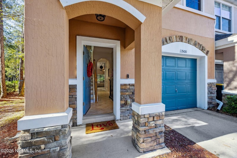 Listing details for 13500 Sunstone St, Jacksonville, FL 32258 : Discover effortless living in this beautifully renovated end-unit 2BR/2.5BA townhome with a 1-car garage, located in the gated community of Emerald Preserve at Bartram Park. This light-filled home offers an open-concept layout ideal for everyday living and entertaining. The 1st floor features elegant tile flooring, while the upstairs showcases wood and tile flooring. The chef-inspired kitchen includes 42-inch maple cabinets with updated hardware, quartz countertops, stainless steel appliances, and a breakfast bar opening to the dining and living areas. The living room features a built-in entertainment center and bookcases, and the flex room offers custom cabinetry with a built-in desk—perfect for a home office. Upstairs, spacious owner's suite includes a custom walk-in closet and an updated private bath with quartz countertops. A versatile loft and updated guest bath add flexibility. Enjoy serene nature preserve views from the screened lanai and patio, offering privacy on two sides.