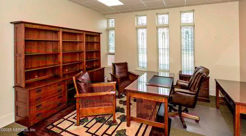 Listing details for 1354 Laura St, Jacksonville, FL 32206 : Property features two conference rooms and a large meeting room, fully equipped kitchen and ADA-compliant bathrooms, spacious open work area for collaborative projects, individual offices all featuring built-in shelving. Prime location in the heart of the Historic Springfield District. Only a few minutes from downtown businesses and close to restaurants, interstates, and vibrant neighborhoods including San Marco, Five Points, Riverside, and Arlington. Walking distance to Klutho Park and the Main Street Retail District. The building was completely renovated in 2005 from a windowless warehouse. Exterior and entrance reception area are inspired by Klutho's Prairie Style. On-site parking and plenty of street parking.