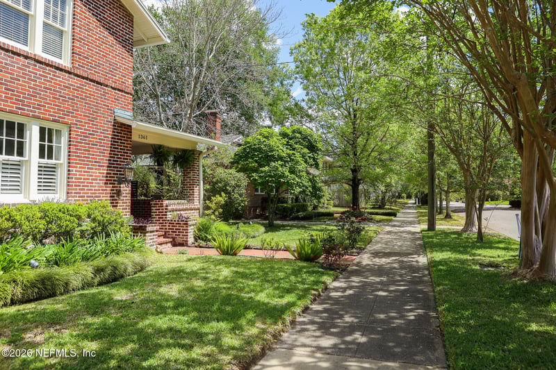 Listing details for 1361 Challen Ave, Jacksonville, FL 32205 : Price improved by $10,000! Charming brick pool home on one of Avondale's most desirable streets with a detached guest house, 2-car garage, and oversized lot. Main home features 3 bedrooms, 2 full baths, original wood floors with inlays, updated kitchen with granite countertops and newer cabinetry, plus a bonus nook. All bedrooms are upstairs with a full bath, and the main level includes a second full bath with direct pool access. Detached guest house offers vaulted ceilings, kitchenette, and full bath--ideal for guests, extended family, office/studio space, or income potential. Easy-care backyard features a newer high-end pool with self-cleaning system and plenty of off-street parking. Major updates include HVACs in 2023 and 2025, roofs in 2012 and 2023, 2 new water heaters, and updated plumbing and electrical. Covered front porch, lush landscaping, and a beautiful street lined with classic Avondale homes.