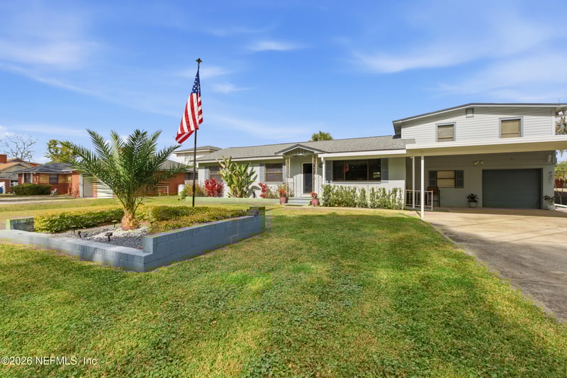 Listing details for 1363 Carbondale Dr, Jacksonville, FL 32208 : Tucked at the end of a quiet cul-de-sac, this block home offers rare privacy and stunning river views on a full ACRE. Inside, enjoy two owner suites, two additional bedrooms, and three fully renovated bathrooms — ideal for guests or multi-generational living. The main level features tile throughout, updated cabinetry and counters, and full PVC replumbing for peace of mind. Out back, a fenced yard keeps kids and pets safe while you take in sunrise coffee or sunset cocktails from the porch. A private dock brings daily wildlife sightings — dolphins and manatees included. Cool off in the pool on warm days or unwind in the hot tub as the river glows at dusk. A unique blend of space, nature, and modern comfort — riverfront living at its finest.