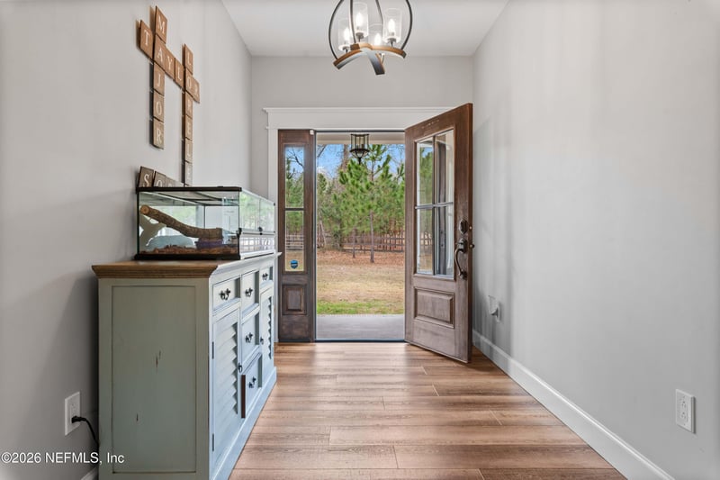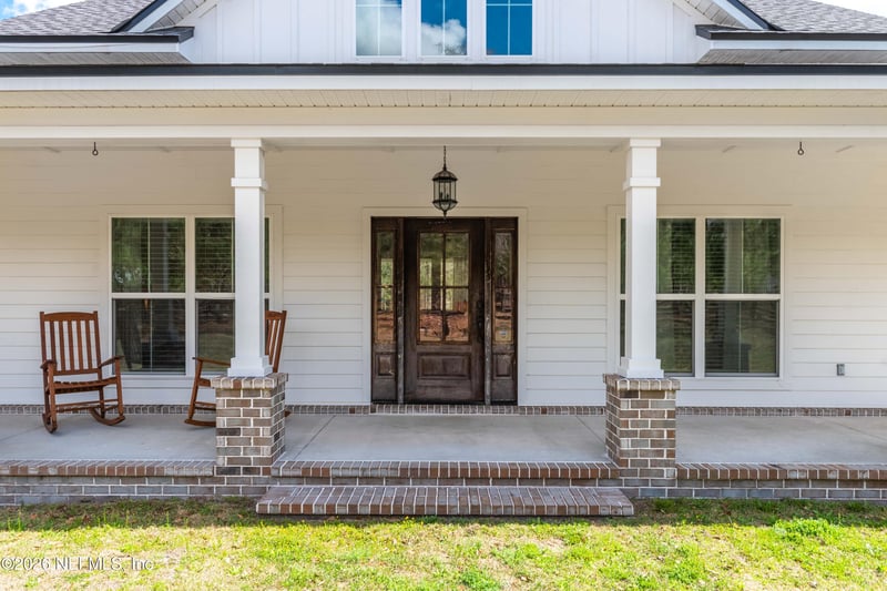 Listing details for 13689 Bob Burnsed Rd, Glen St Mary, FL 32040 : Stunning farmhouse on 11.29+/- high and dry acres! This 3-bedroom home with 4th bedroom/office was built in 2020 and includes two full baths featuring dual vanities and over-the-top luxury, a half-bath for guests, and two huge porches for outdoor entertaining! The custom woodwork throughout, oversized vinyl plank flooring, and incredible custom trim and window/door casings elevate the space. The kitchen is the true showstopper, overlooking the equally stunning living space with custom shelving and a gas fireplace. The enormous pane glass windows frame views of the property, which features acres of planted pines (with agricultural tax exemption), cleared acres for plenty of space, fruit trees, fenced acres for livestock, and a 3700 sqft fenced garden. The 30'x30' garage can be used as a workshop, barn for animals, or storage for an RV/boat/toys. This combination of luxurious interior and superb outdoor space won't last long! VA-qualified buyer may qualify for 3.125% assumable mortgage.