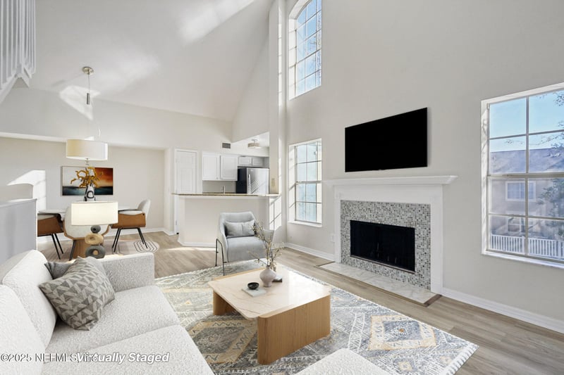 Listing details for 13700 Richmond Park Dr #1207, Jacksonville, FL 32224 : Welcome to this light and bright 2 bedroom 2 bathroom condo in Bishop's Court, offering a comfortable layout and peaceful pond views. The open great room creates an inviting first impression, with the living area highlighted by a vaulted ceiling, a cozy fireplace, and an abundance of natural light. The kitchen features stainless steel appliances, a pantry, and a convenient breakfast bar, with the dining area located just off the kitchen, making everyday meals and casual gatherings easy. Both bedrooms are generously sized and include walk in closets. Each bathroom is directly connected to a bedroom, with one also accessible from the hallway for added convenience. Upstairs, a versatile loft offers flexible space that works well as a home office, reading area, or additional living space. A laundry closet with a dryer and new washer adds everyday convenience, while brand new flooring throughout and fresh interior paint give the home a clean, move in ready feel. Relax and unwind with tranquil pond views and enjoy the Bishop's Court amenities, which include two pools, a hot tub, a clubhouse, fitness center, and a tennis court. The wonderful location places you close to shopping, dining, and just minutes from the Mayo Clinic campus. With its fresh updates, flexible layout, scenic views, and prime location, this condo offers an easy, low maintenance lifestyle that is ready to be enjoyed from day one.
