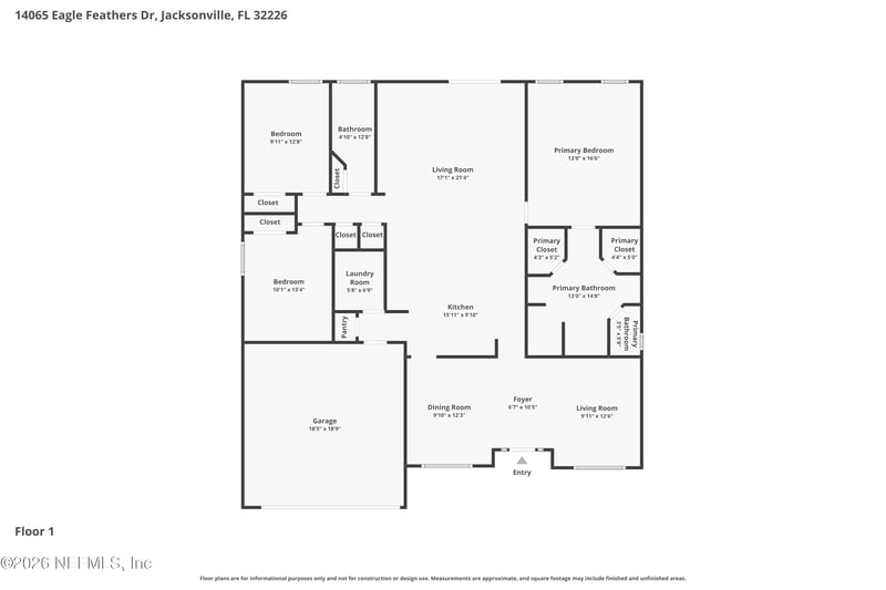 This beautiful 3 beds 2 baths home is located at 14065 Eagle Feathers Dr, Jacksonville, FL 32226 and is listed for sale at $325,000.00. This home was built in 2005, contains 1850 square feet of living space, and sits on a 0.27 acre lot. This residential home is priced at $175.68 per square foot.