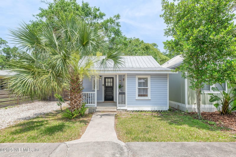 Listing details for 141 Blanco St, St Augustine, FL 32084 : Tiny But Mighty Lincolnville Gem! Fully Updated 1930s Cottage. Welcome to this charming 1930s cottage in the heart of the historic Lincolnville District—668 sqft of smart, stylish living that perfectly captures the spirit of old St Augustine. Thoughtfully renovated in the early 2020s, this 2-bedroom, 1-bathroom home blends vintage character with modern convenience. Inside, you'll find wood floors throughout, vaulted ceilings & custom built-in beds maximizing space without sacrificing style. The bathroom features a timeless clawfoot tub & and the tankless water heater ensures endless hot showers. A full-size washer and dryer are also included, offering everyday practicality in a compact footprint.