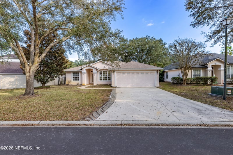 Listing details for 1412 Kipling Ln, Ponte Vedra, FL 32081 : Come explore this single-family, detached stucco home located within Walden Chase. The property features a tiled foyer, separate dining area, open living room, breakfast nook, galley-style kitchen, interior utility area, and an additional flexible-use room. The primary bedroom offers a vaulted ceiling, and the primary bathroom includes a garden tub and a walk-in shower. The home also offers a fenced rear yard.